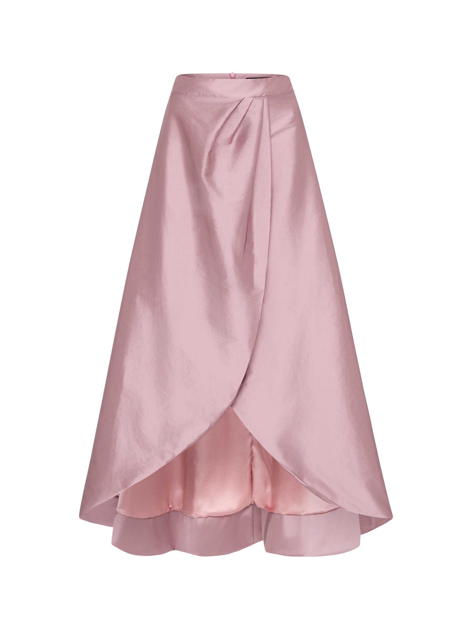 Our Rene Skirt is a statement silhouette, cut from a two-tone shot taffeta. Featuring a full length, A-line, high-low skirt with a wrap style front. Fully lined, with a wide waistband secured with a centre back invisible zip. It is an elegant style perfect for the races or your next cocktail event.