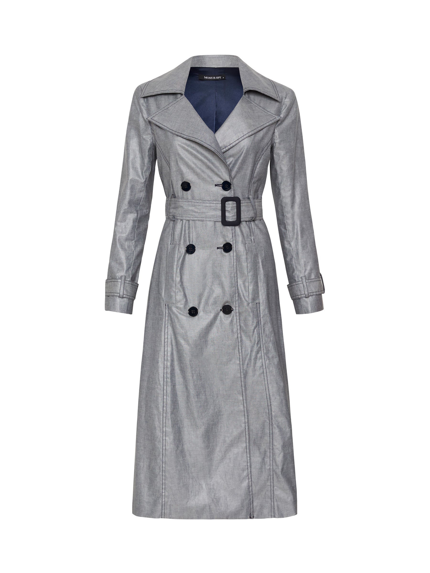 A modern update on the classic Spring coat, the Chelsea Trench is sure to be on high rotation this season. Tailored from an indigo yarn dyed, coated cotton fabrication, this trench features navy detailing with a double-breasted button closure, a self-belt with a buckle to cinch in the waist and beautiful top stitching. With a slight A-line silhouette, finishing mid to low calf, the Chelsea Trench is a neutral and versatile style, making it the perfect staple for your Spring/Summer wardrobe.