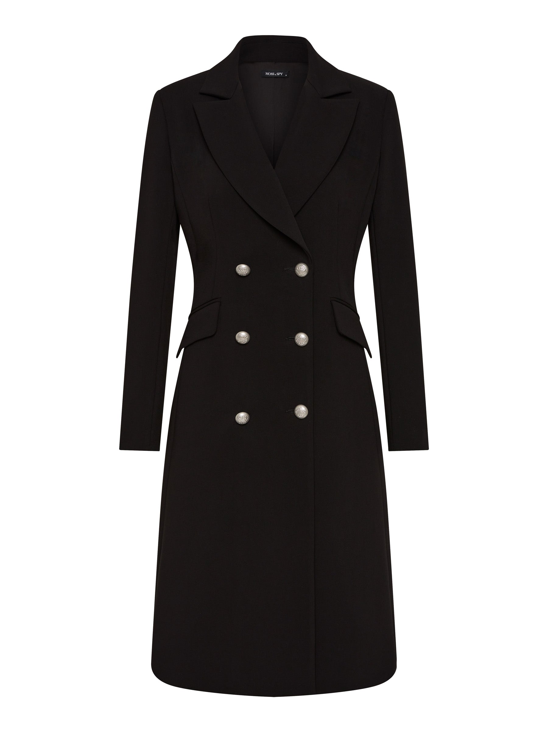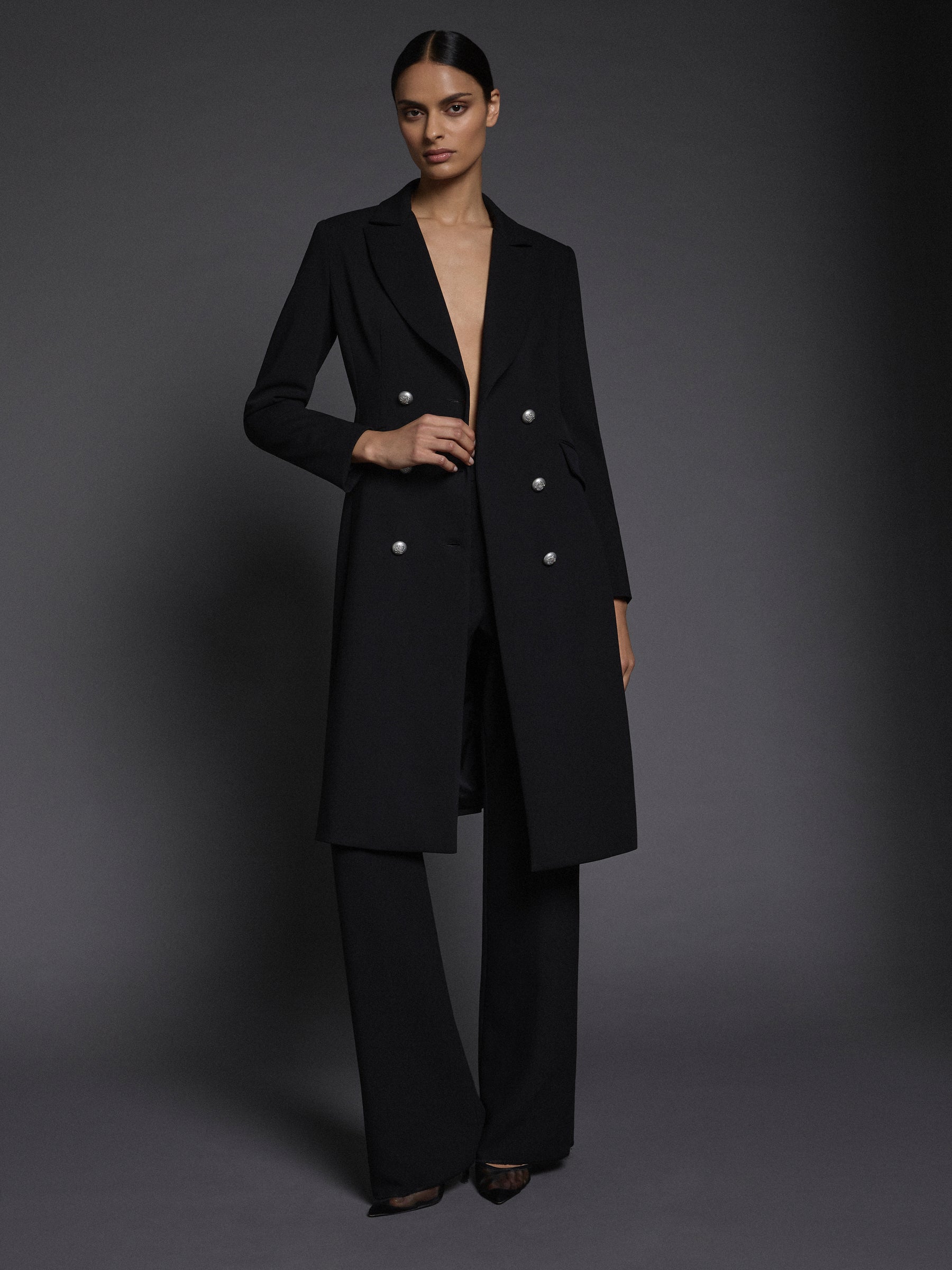 Classically tailored in a stretch-suiting and enhanced with silver crest buttons, the Alberta Long Jacket will make a strong, feminine statement. This slim line long jacket is fully lined in stretch satin with figure flattering panelling, shoulder pads, and jet pockets. Match it perfectly with the Alberta Pant and Anais Blouse for an elevated look or pair it with your favourite jeans for a striking, casual look.