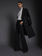 Classically tailored in a stretch-suiting and enhanced with silver crest buttons, the Alberta Long Jacket will make a strong, feminine statement. This slim line long jacket is fully lined in stretch satin with figure flattering panelling, shoulder pads, and jet pockets. Match it perfectly with the Alberta Pant and Anais Blouse for an elevated look or pair it with your favourite jeans for a striking, casual look.
