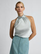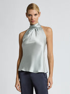 Elegant and endlessly versatile, the Ally Top is crafted from a luxurious silk viscose blend. Featuring a cut away armhole and high collar, secured at centre back with pearl button and loop closures. Whether worn tucked in or left loose, the Ally Top offers timeless sophistication. Pair with the Lolita Skirt for an elevated look that transitions from garden parties to summer dinners.
