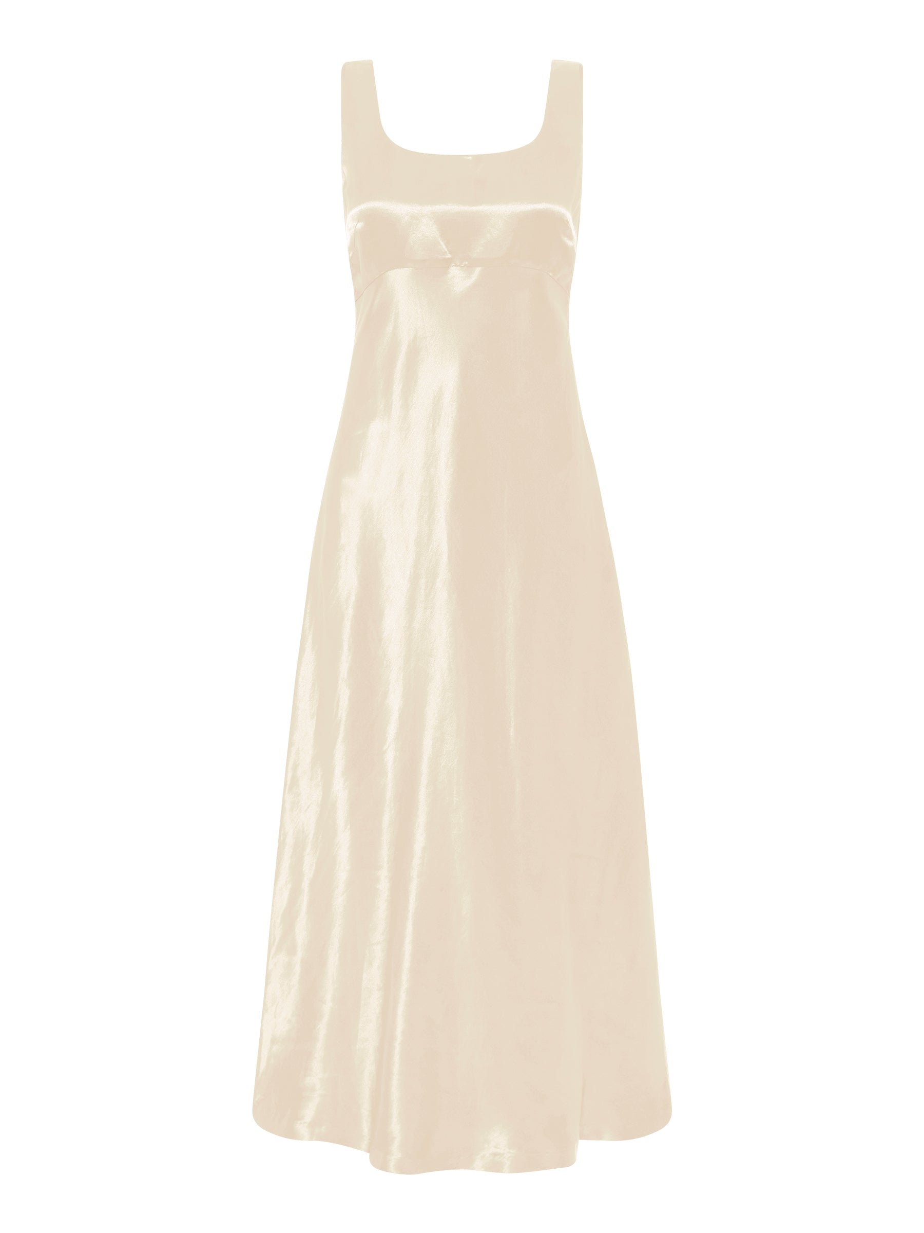The Bianca Midi is crafted from a lightweight sateen linen viscose and cut on the bias to allow for a slight flare. Features a rounded, square neckline with an under bust seam falling into a slight A-line silhouette, finishing at mid-calf. The Bianca Midi is fully lined in a stretch satin and features a centre back invisible zipper.