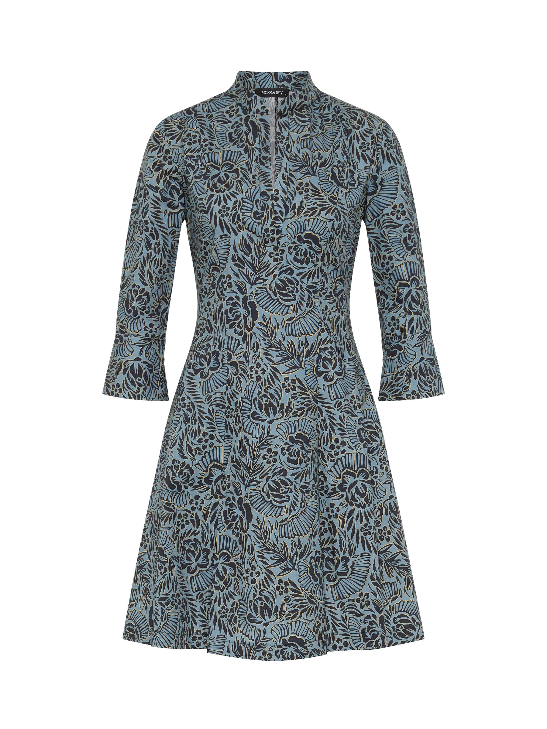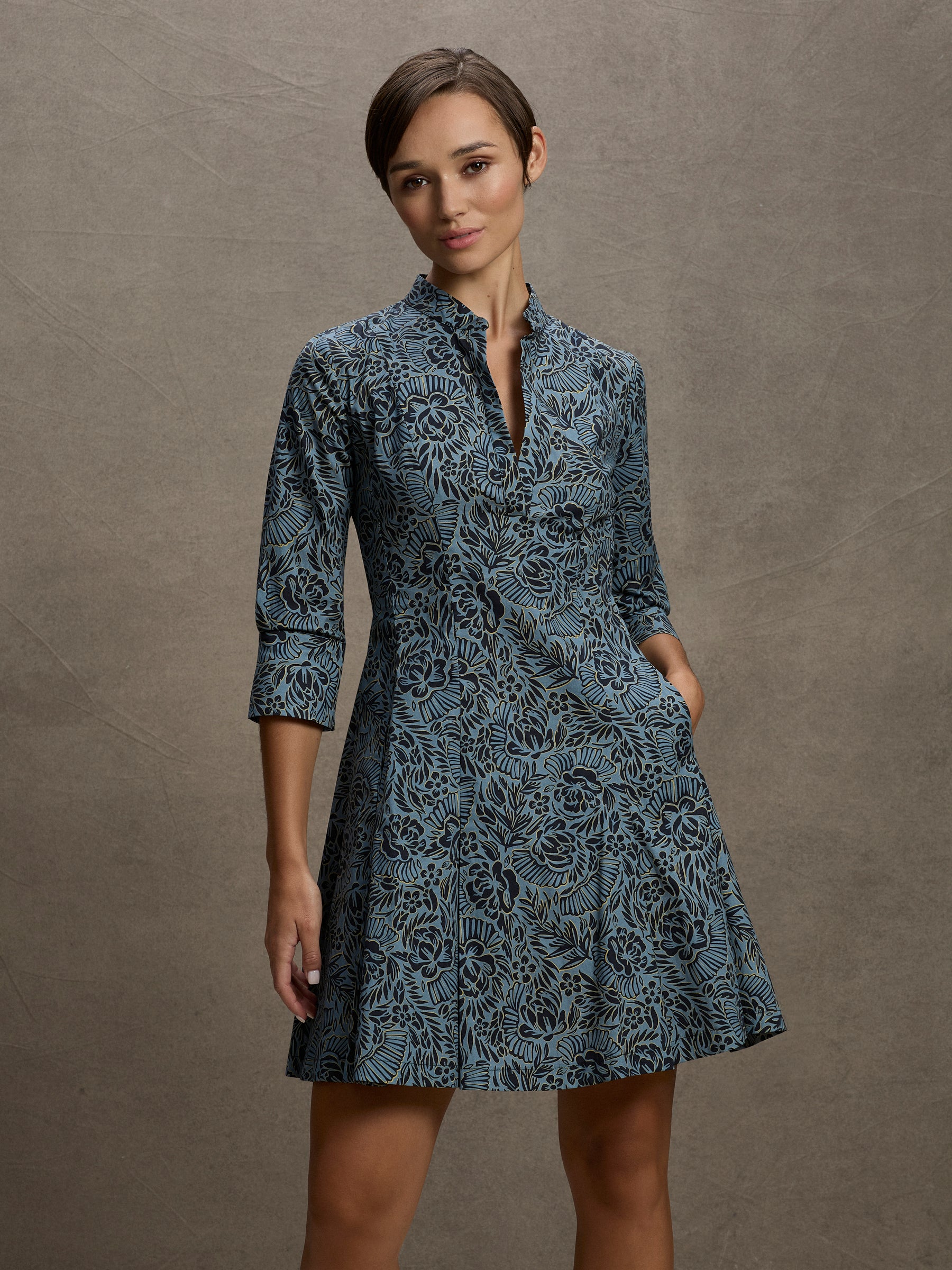 The Birdie Shirt Dress is crafted from an exclusive floral print in stretch cotton poplin. The perfect alternative to a classic shirt dress, the figure flattering A-line silhouette features side pockets falling to a pleated A-line skirt that finishes above the knee. The elbow length sleeves and open collared neckline make it the perfect cool and easy to wear choice for spring and summer days and nights.