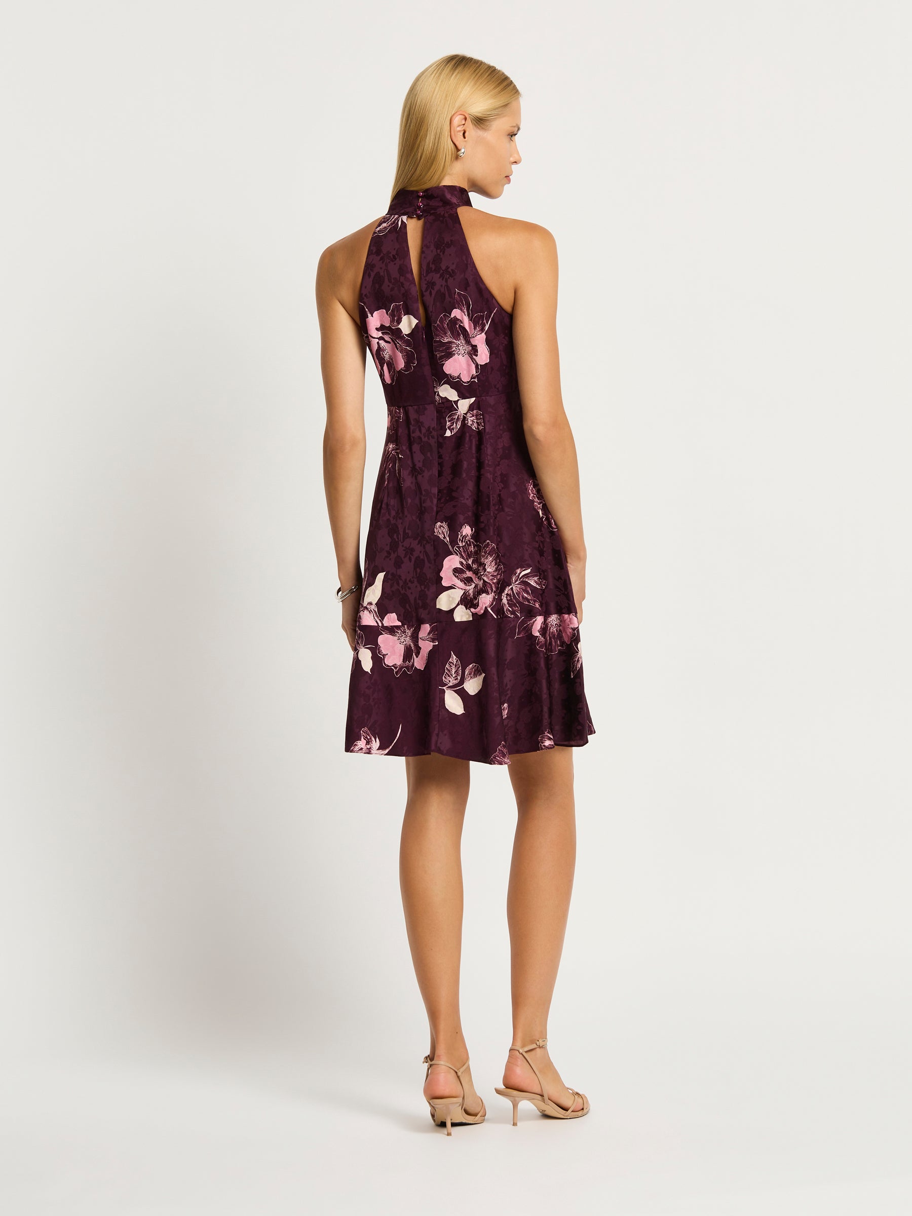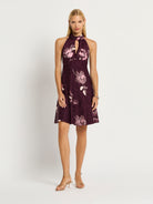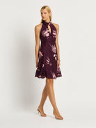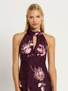 The Camille Sleeveless Dress is crafted from a mid-weight viscose floral jacquard with an exclusive floral print perfectly placed to flatter the body. Fitted through the bodice with a cut away armhole and under bust seam, it has a keyhole opening secured with a button and loop fastening at centre back. Cut on the bias, this shapely yet relaxed silhouette gently hugs the body whilst falling to a flounce hem, finishing just above the knee. The perfect dress for your upcoming cocktail events