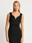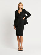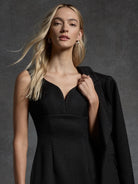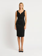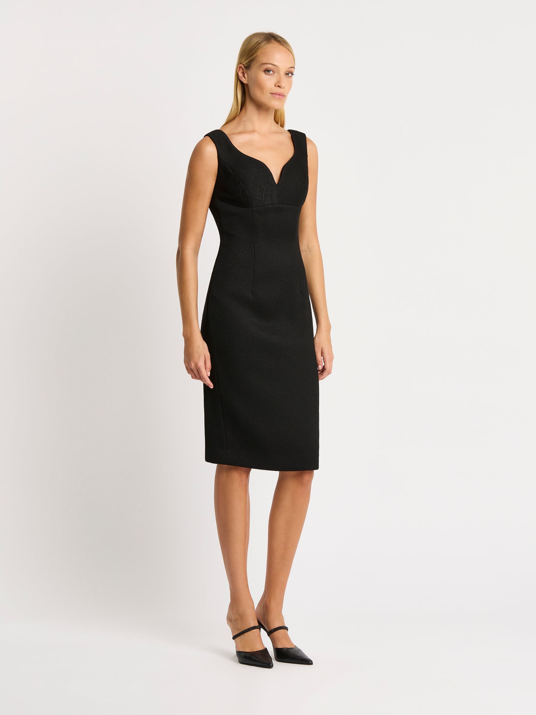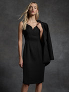 Crafted for a subtle metallic finish crepe suiting this classic little black dress is the perfect dress for a black tie or cocktail event. Inspired by 1950’s couture, the sweetheart neckline and fitted silhouette makes it a timeless piece for any occasion.