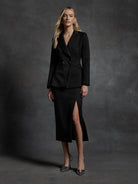 Inspired by 1950’s couture, this classic double-breasted jacket is crafted from a subtle metallic finish crepe suiting. Beautifully tailored with pockets, it’s shaped at the waist with shoulder pads and is fully lined with stretch satin.