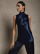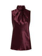 The Eleanor Sleeveless Top is crafted from a silk viscose featuring a cut away armhole and high collar, secured at centre back with button and loop fastenings. Pair the Eleanor Sleeveless Top with your favourite skirt or pants, the perfect top to take you from day to night.