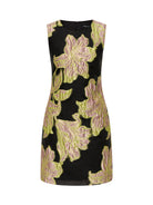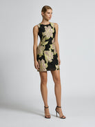 Inspired by vintage 1950’s glamour the Florence Mini is crafted from an exclusive two-tone floral jacquard in citrus and pink on a contrasting black organza. The fully lined classic mini shift is shaped to fit the body with a round neckline and straight skirt finishing above the knee. An easy to wear cocktail or special event showstopper.