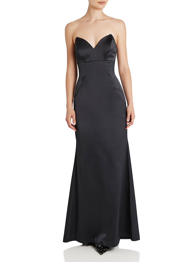 The Gabriella Gown will never date, it is cut from sculpting satin-crepe and is fitted with internal boning for support and has an elegant strapless sweetheart neckline that elegantly frames the décolletage. It is fitted through the bodice and hugs the hips before gently kicking out at the hem. The expertly curved seams running through the front not only enhance your figure but are functional pockets. Style this gown with statement jewellery and pumps.
