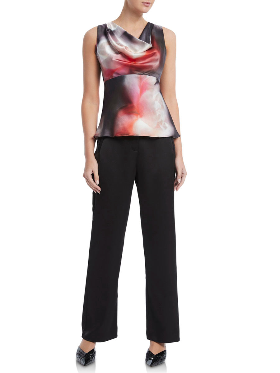 The Joan Pant is crafted from a medium-weight satin crepe. This sleek slightly flared, high waist pant is the perfect staple for night time dressing. Teamed with a tucked-in blouse and pumps for a chic evening look.