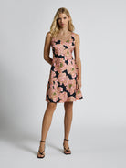 The perfect summer dress, the Kimberly Short Dress is designed to transition from day to night. Featuring an exclusive pink floral print with highlights of citrus on a dark ink background, it has a scoop neckline and under bust seam, falling to a slight A-line silhouette, finishing above the knee. The Kimberly Short Dress is crafted from a mid-weight linen blend and cut on the bias to allow for a slight flare.