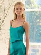 The Kirsten Cami is tailored from a luxurious midweight drape sateen fabrication. This sleek Cami features spaghetti straps and a button and loop fastening at centre back. Cut on the bias with side split detailing. The perfect wardrobe piece for day or night. Style with the Kirsten Pant for an elegant, modern look.