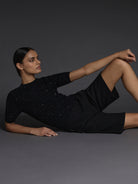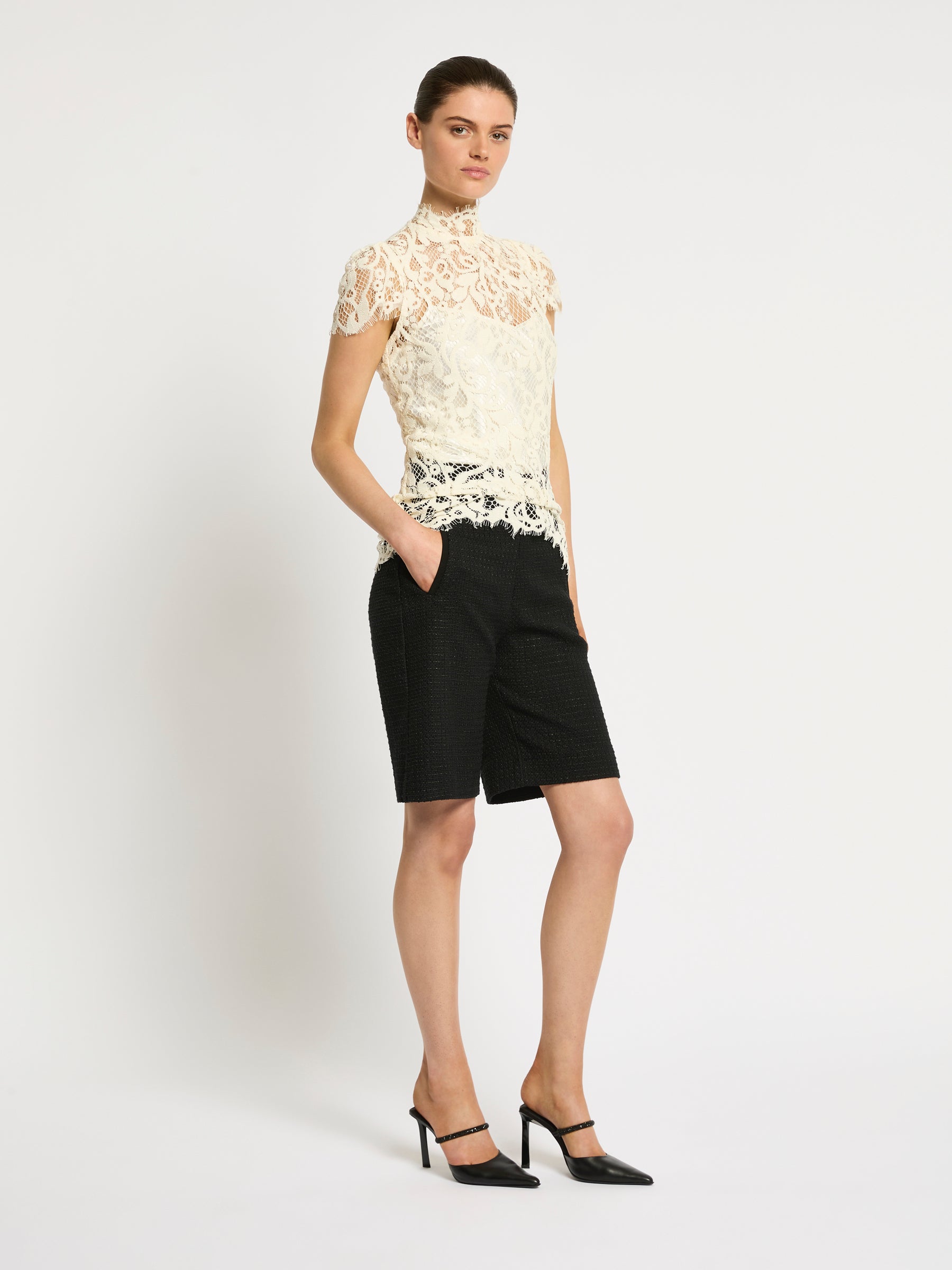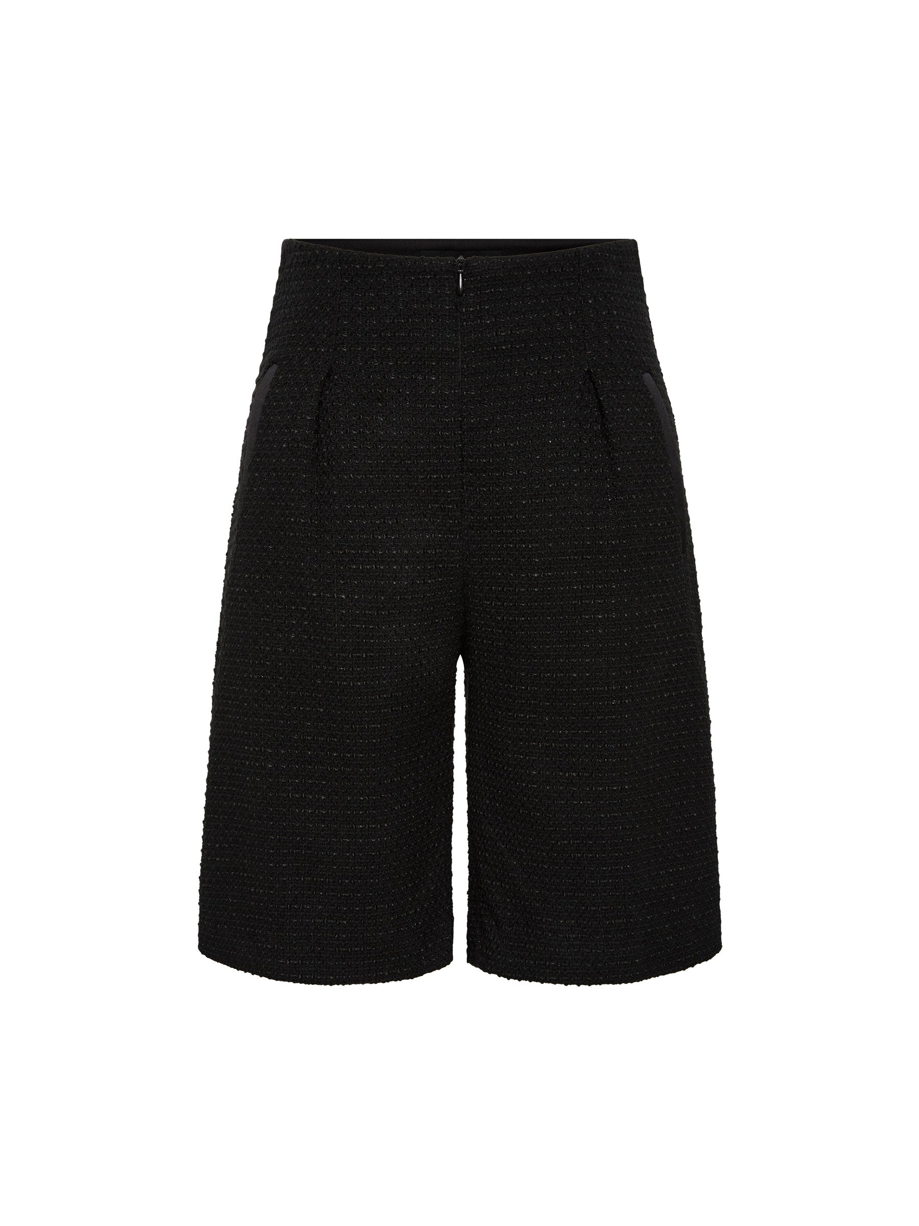 The Luna Short is crafted from an Italian stretch tweed fabrication in a cotton viscose blend, a modern alternative to a straight skirt this long line short will take you from day to night. This fitted, high waisted short features pleats falling to a slight flared hem and finishing above the knee. The Luna Short has welt pockets with satin binding for added detail and a centre front invisible zipper. Pair with the Luna Jacket or the Sparkle Cashmere Sweater for a sophisticated look.