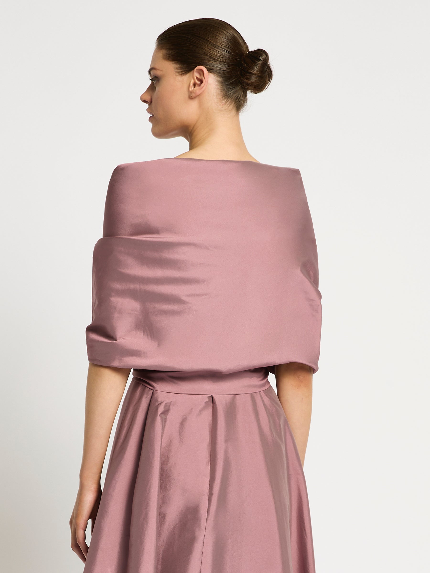 Crafted from a shot taffeta the Rene Wrap is the perfect addition that will add drama and stye to the Rene Gown. Worn as a cover up with a tie front this layering piece will provide shoulder coverage and complete your outfit.