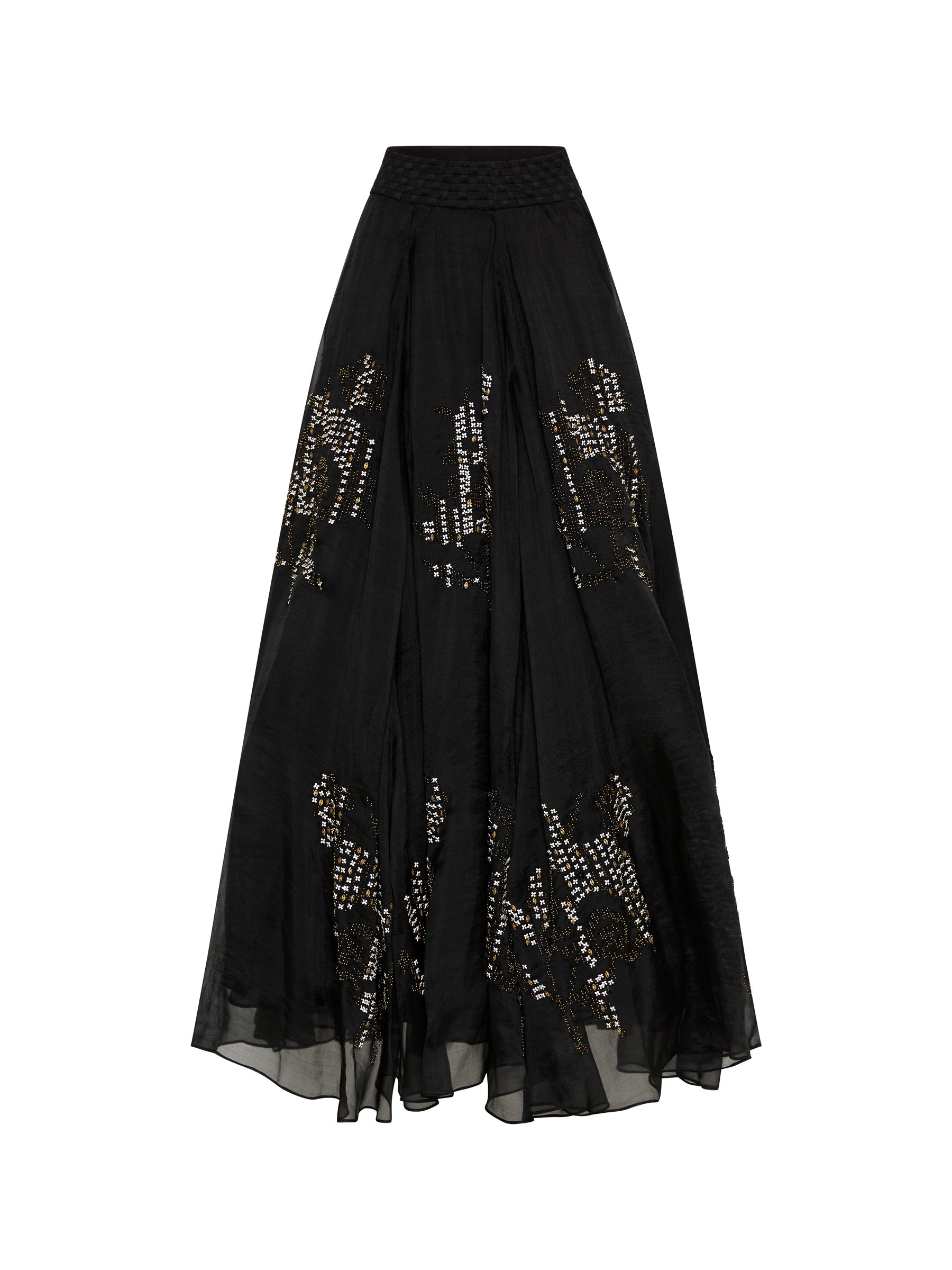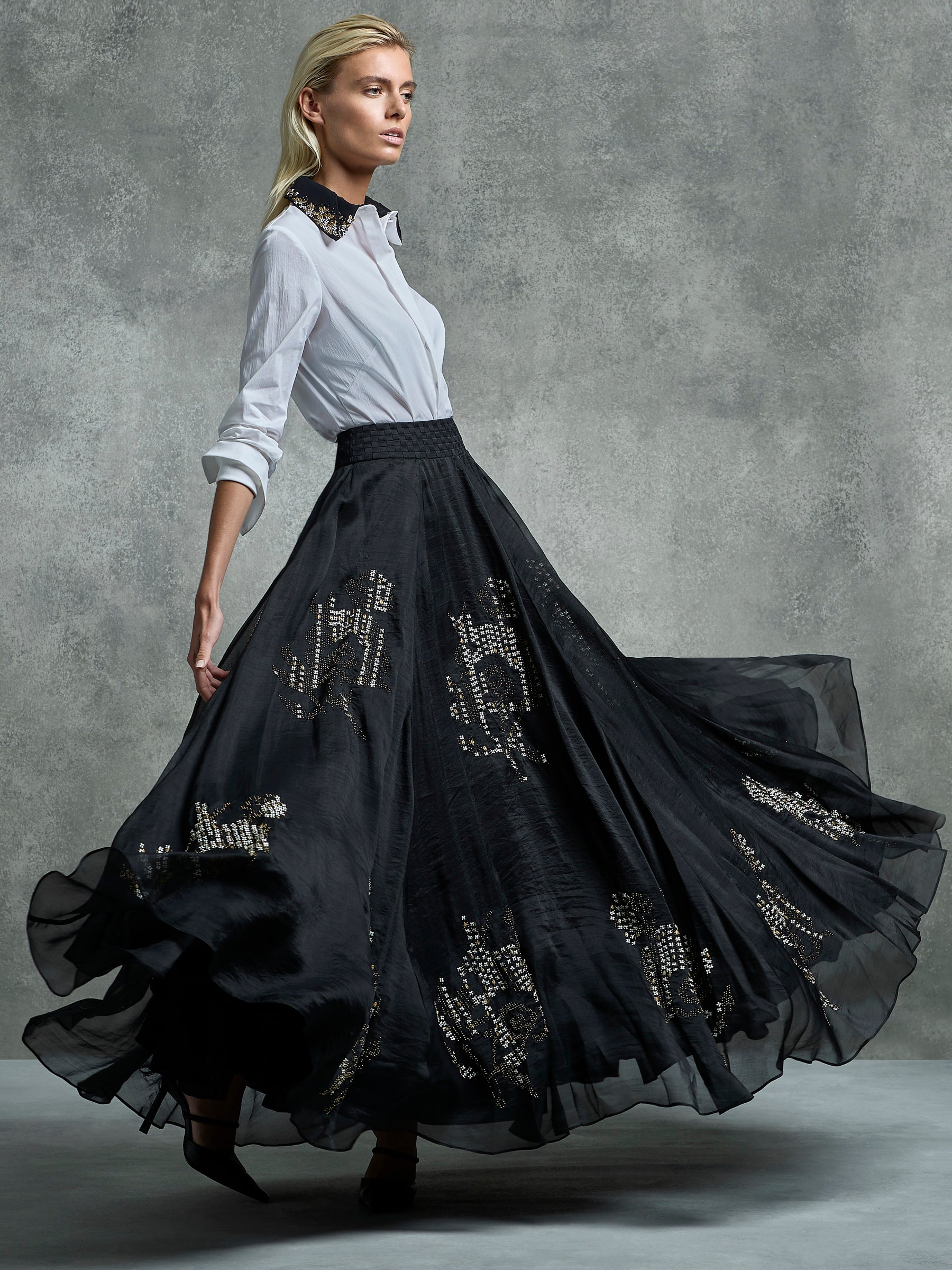 The Royale Skirt is an exquisite statement piece that is beautifully hand beaded on a luxurious silk organza. This luxe skirt features multiple layers including heavy tulle and cotton voile lining as well as an intertwine detailed waistband. Pair this exquisite piece with the Roulette Shirt or Royale Top for an exclusive limited-edition outfit.