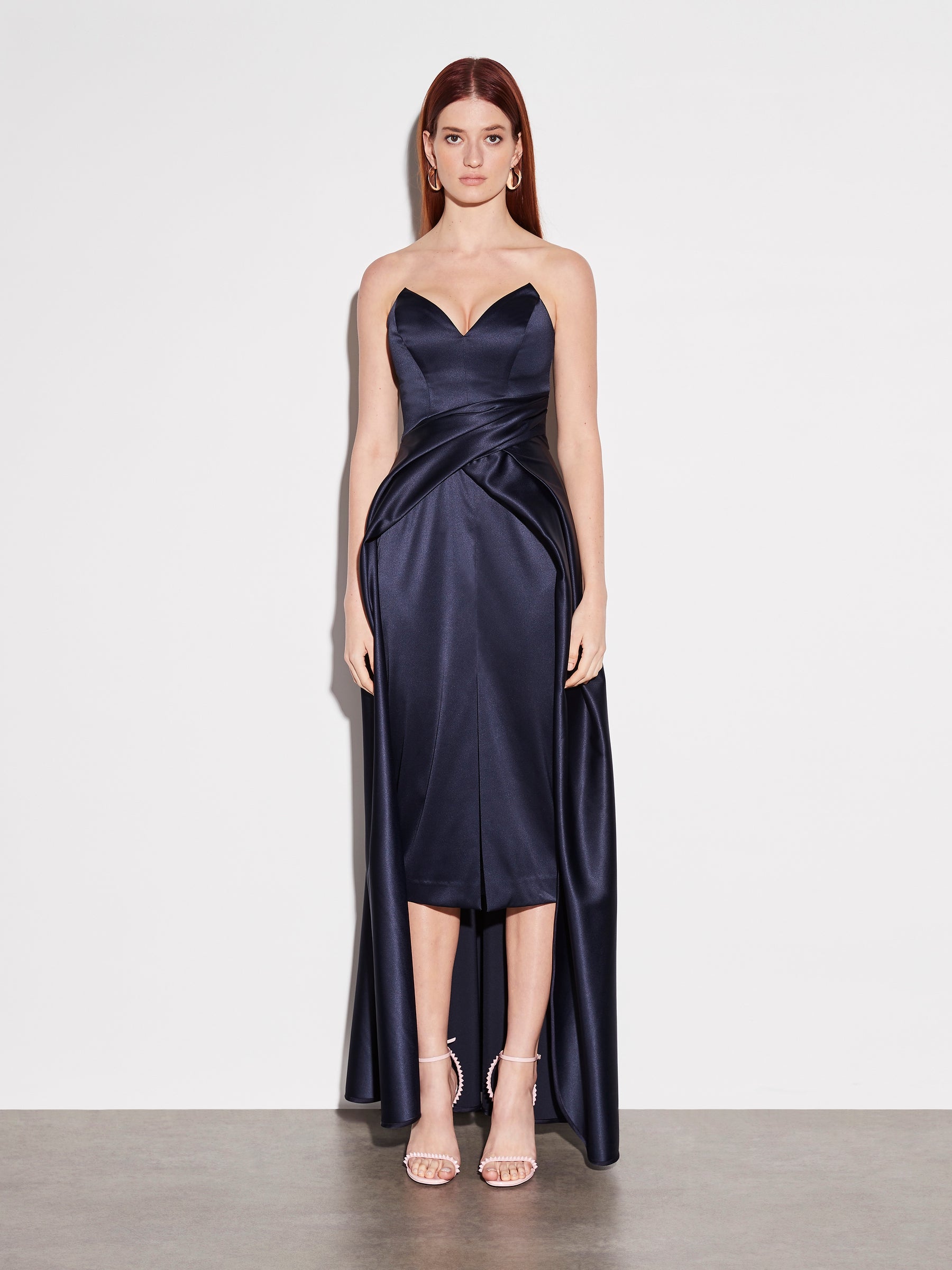 - Fitted strapless shift, underlay, finishing on the knee