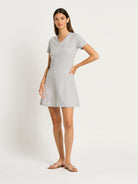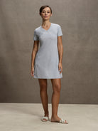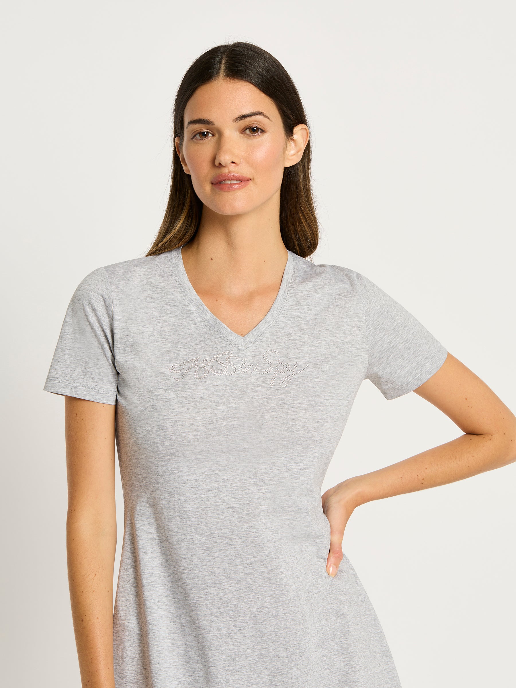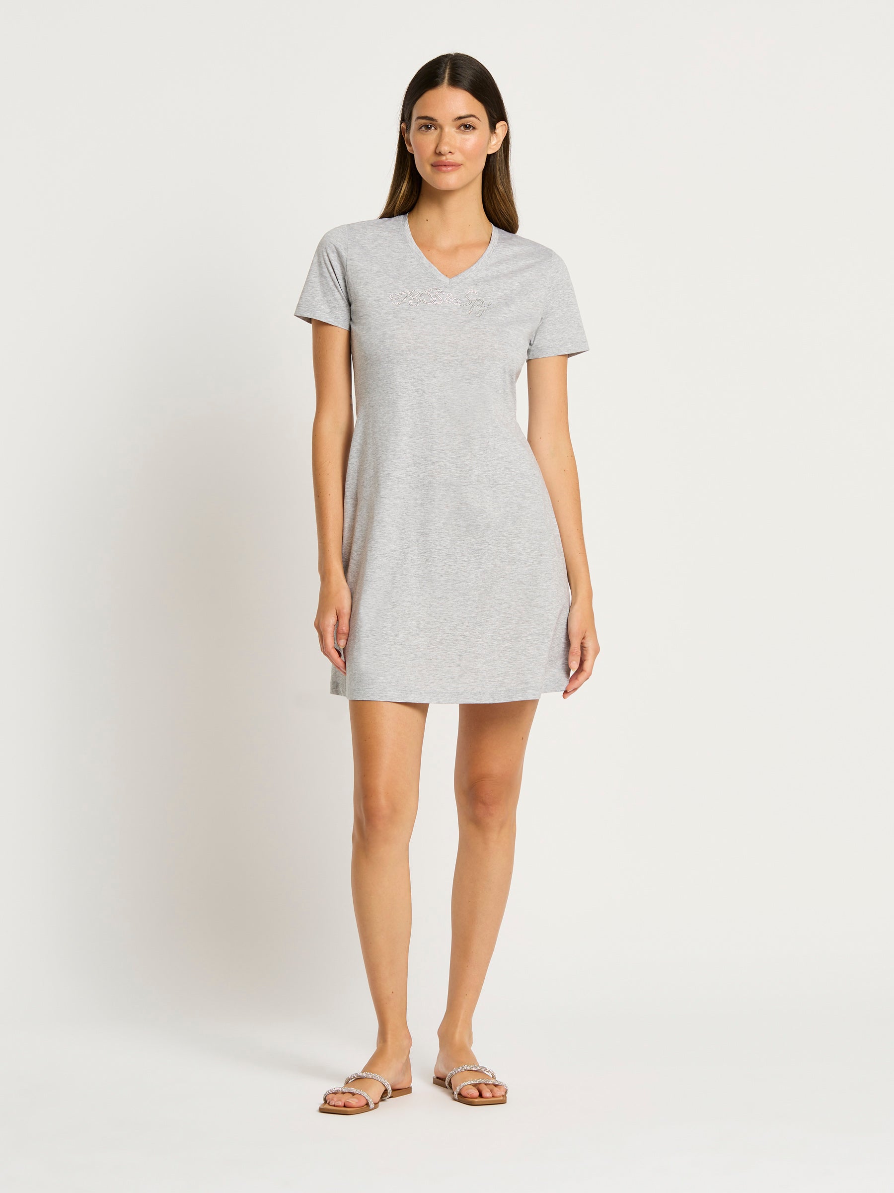 The Signature Mini T-Dress is a great trans-seasonal piece for your wardrobe. Crafted from 100% organic cotton this versatile holiday dress is fitted through the bodice with a V-neckline, featuring a diamante logo and falling to above the knee A-line hem. The perfect day dress for this summer season.
