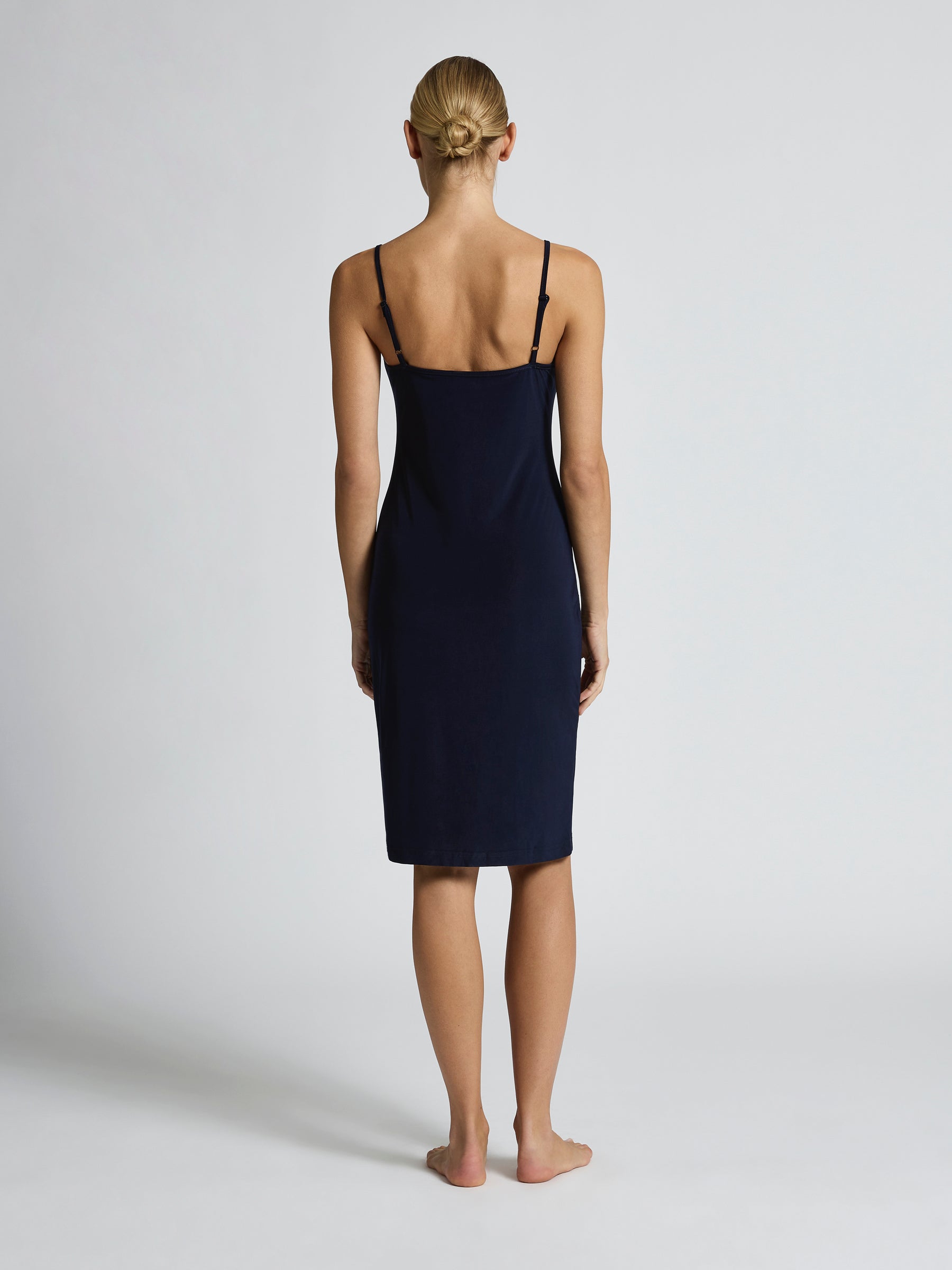 The V-Neck Jersey Slip is the perfect foundation under close-fitting dresses. This slinky knit slip is the perfect under garment to give you extra coverage.