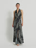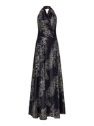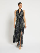 With a dramatic, abstract, cream floral design on dark ink silk viscose, the Constance Sleeveless Maxi is the perfect dress for summer parties. Featuring a draped cross-over bodice leading to an elasticated waist falling into a flowy A-line skirt with a front split finishing maxi length. For added detail the Constance Sleeveless Maxi has a V-shaped back with button closures.