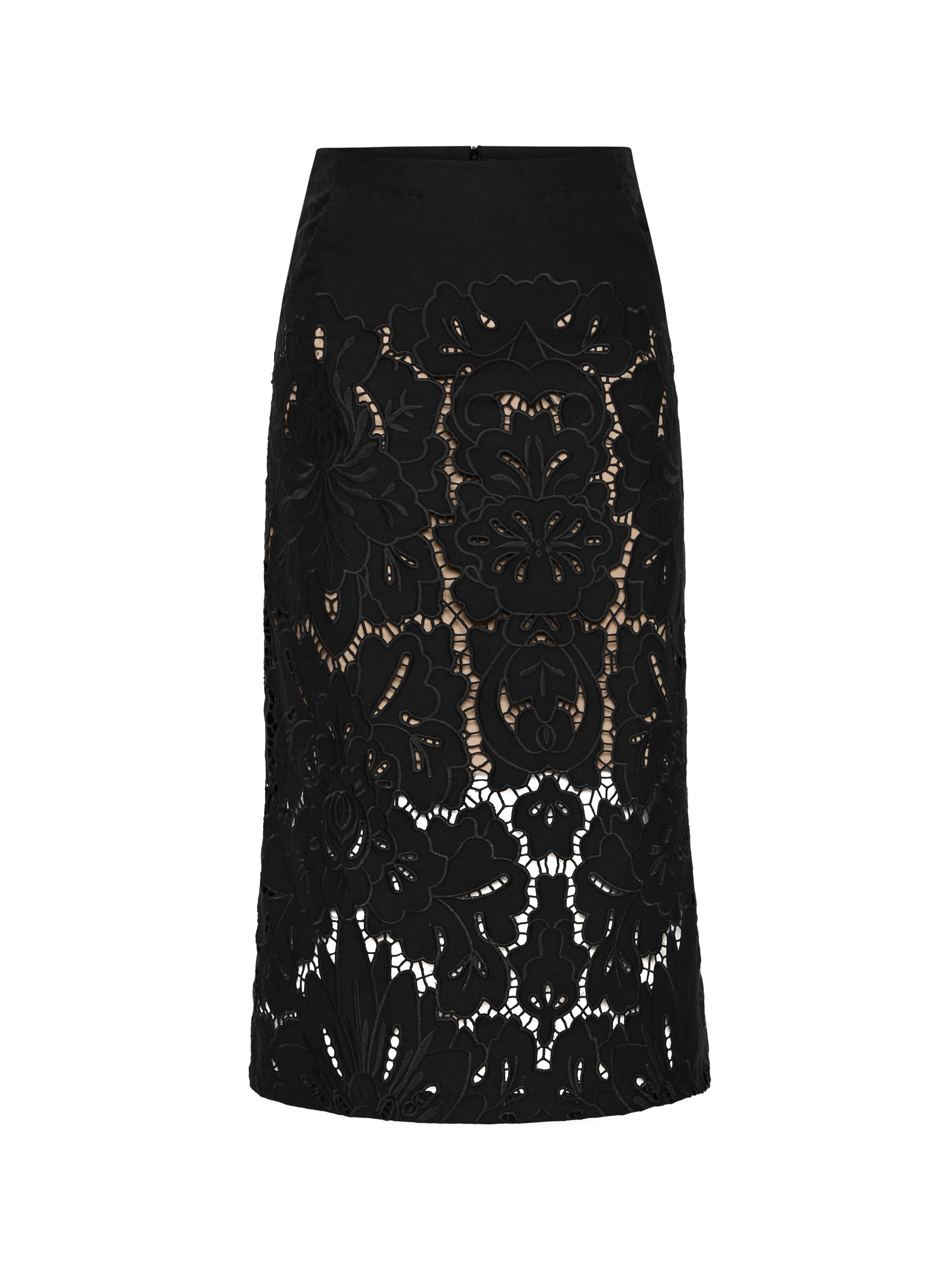 The Colette Skirt is crafted from a cut out embroidered cotton blend. Fitted at the waist and hips for a streamline silhouette falling to an A-line hem that offers ease and movement. Designed with side panel pockets and lined in a stretch cotton for comfort. The perfect skirt for any daytime or evening events, pair with the Colette Bustier and Colette Blazer for a complete look.