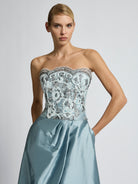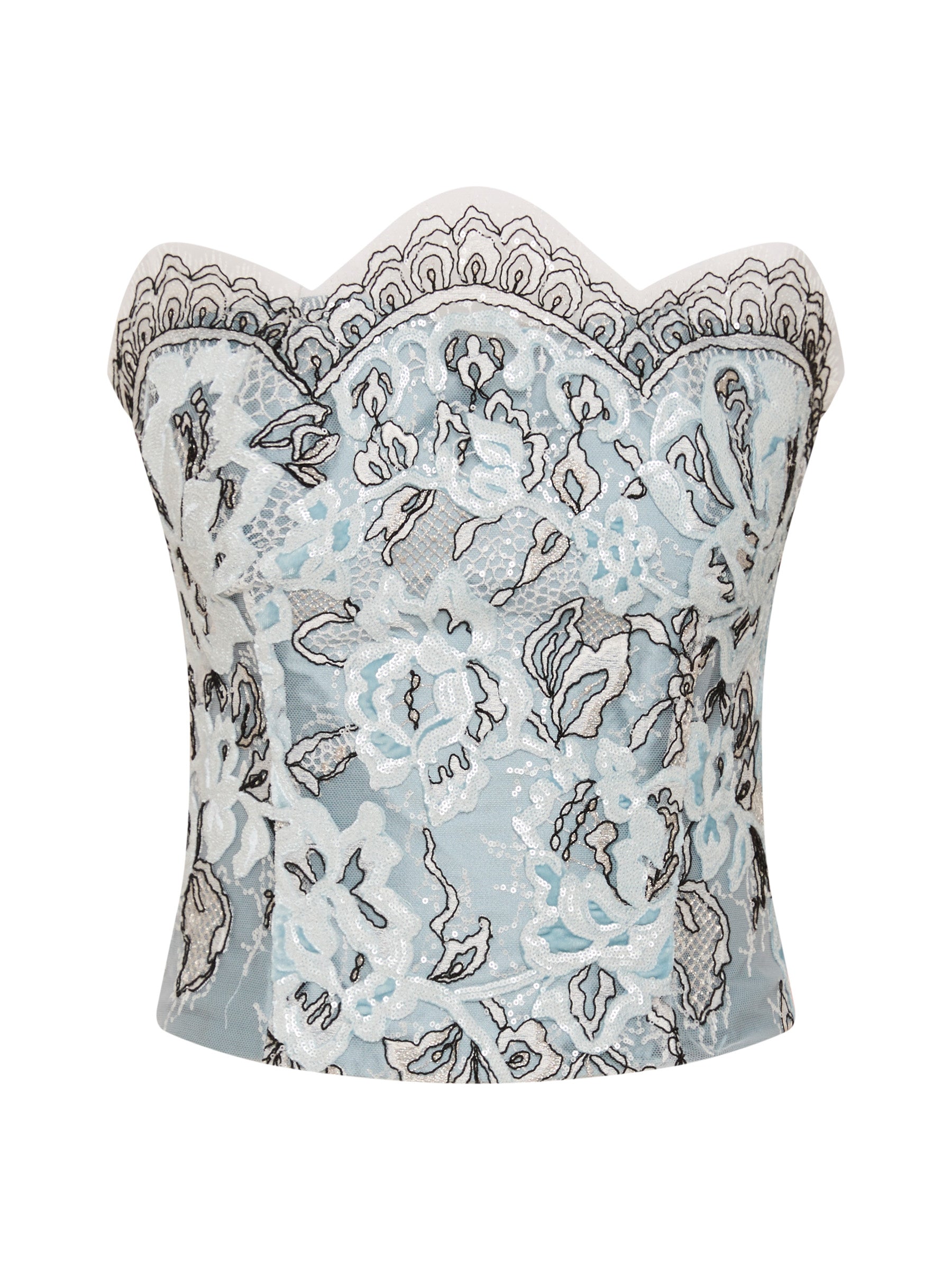 The Daniela Bustier is a refined, statement piece crafted from corded embroidered lace adorned with delicate sequin detailing, offering subtle shimmer and dimension. Designed with a structured silhouette and internal boning, it provides a sculpted, feminine fit that finishes just below the natural waist for a beautifully balanced proportion. Fully lined for comfort and support, the Daniela Bustier pairs effortlessly with the Rene Skirt to create an elevated, occasion-ready ensemble with timeless allure.