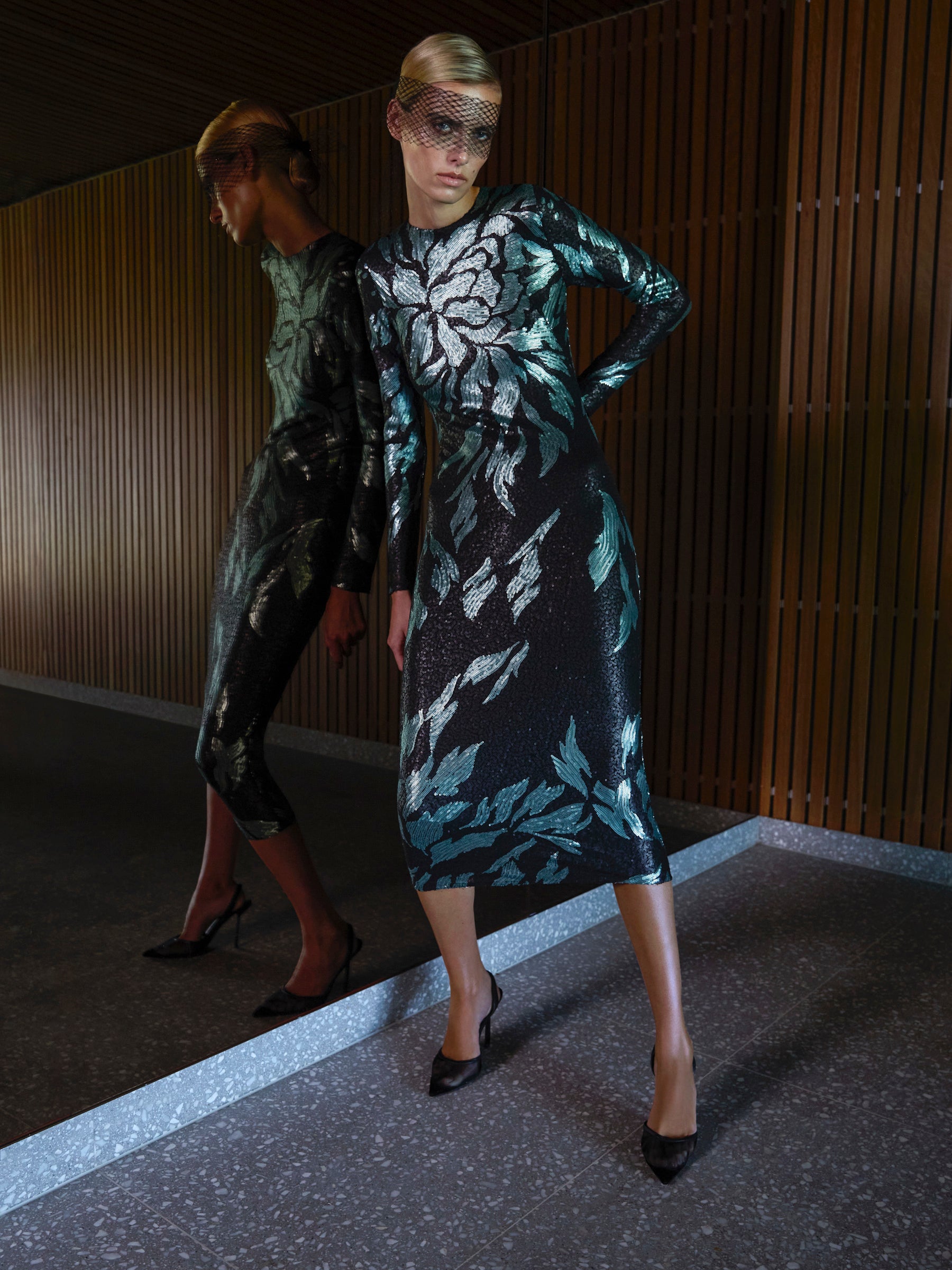 The Larissa Midi has a stunning mint floral design in sequins on stretch mesh which is fitted to the body as a figure flattering silhouette. This fitted shift silhouette features a round neckline, full length sleeves and a centre back invisible zipper, finishing at mid-calf. A sophisticated showstopper to leave a lasting impression at any formal event.