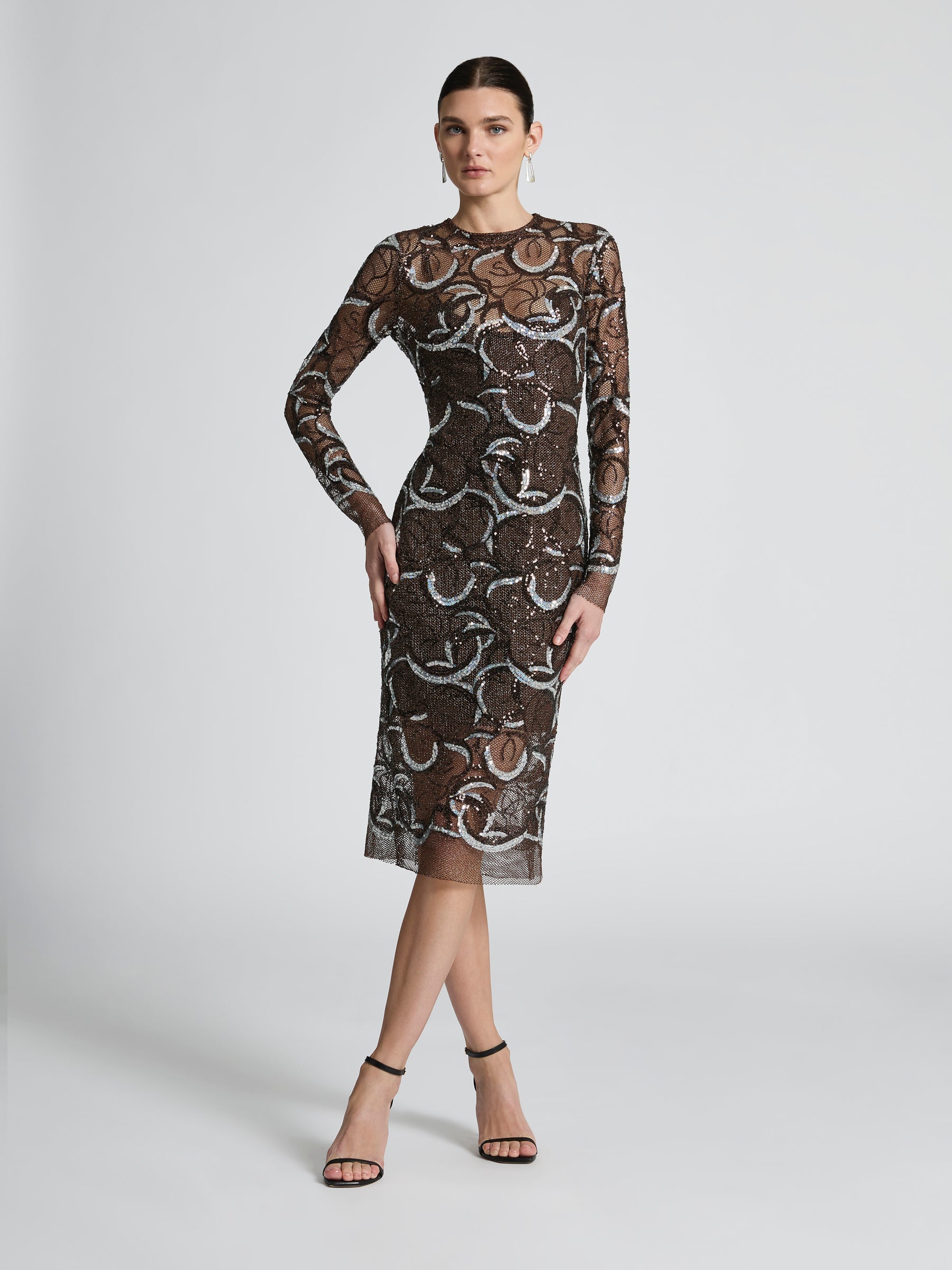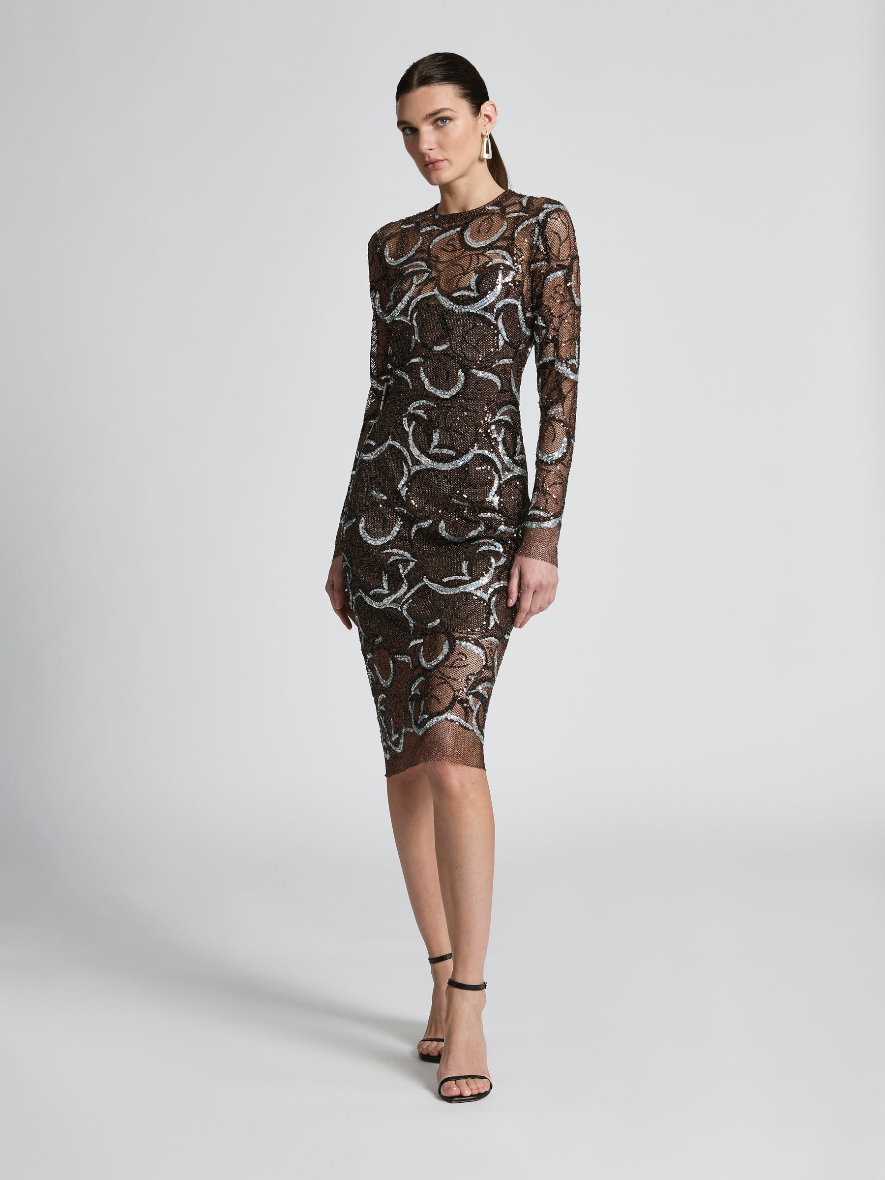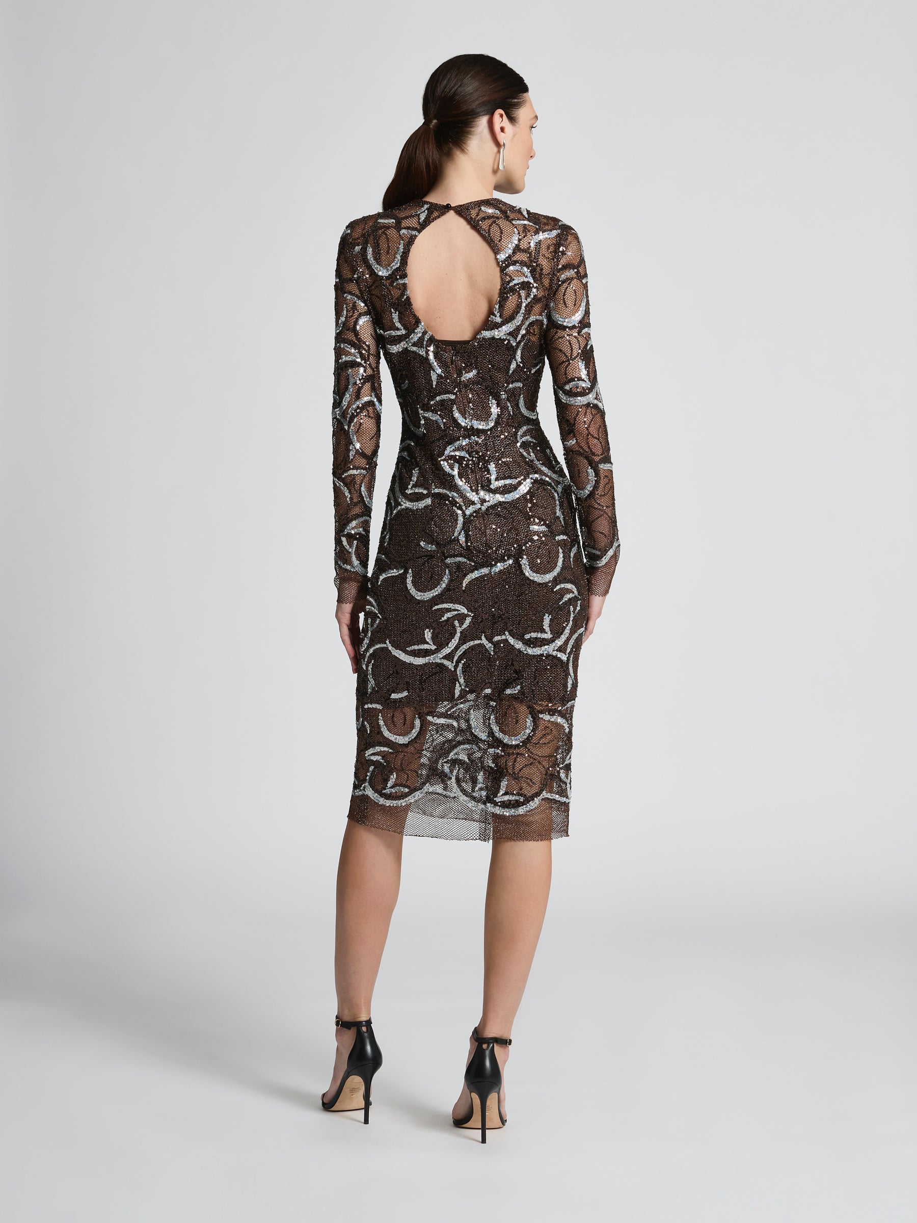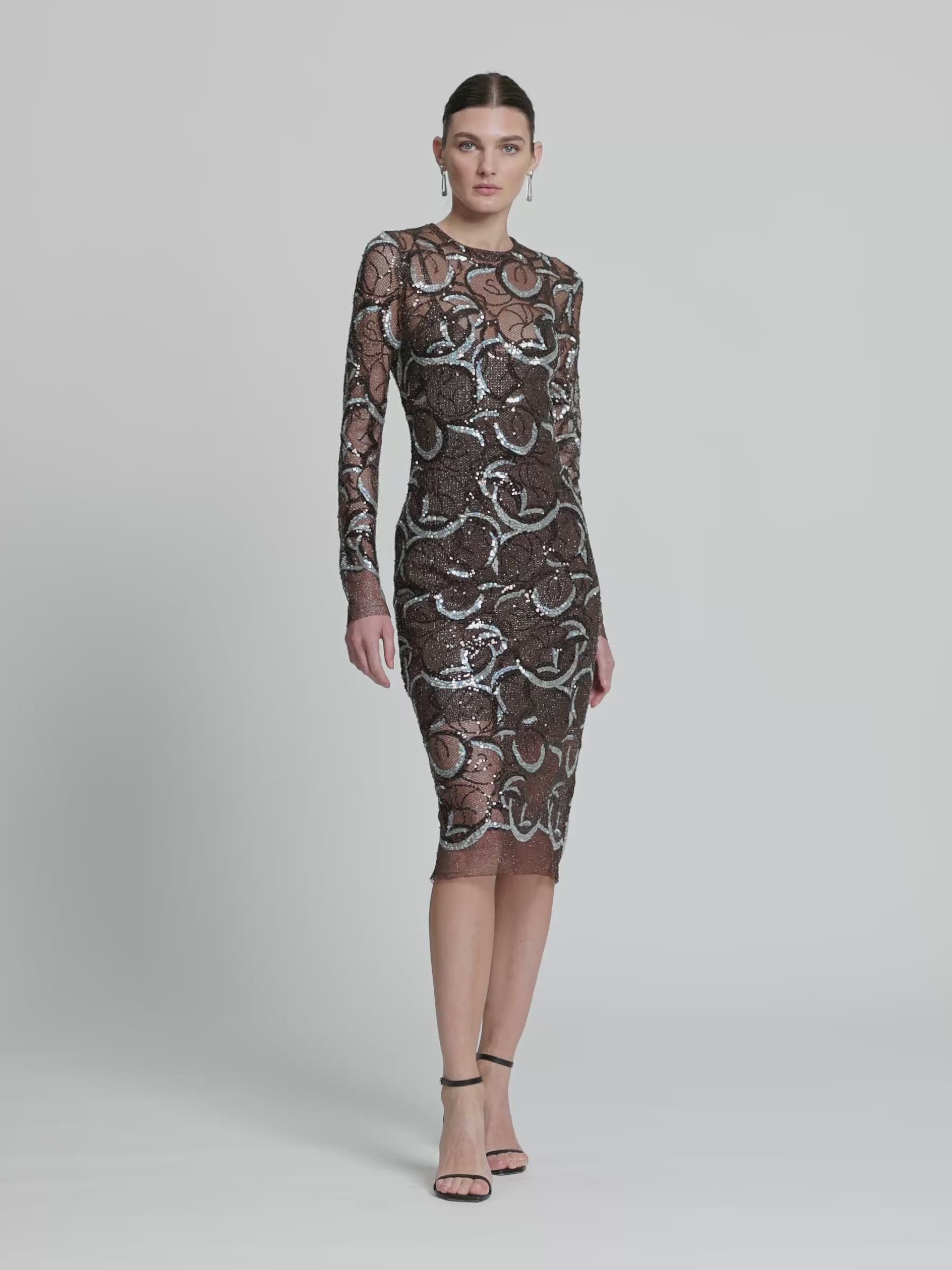 A refined take on evening sparkle, the Monique Shift Dress balances glamour with elegance. A subtle keyhole back detail offers a refined glimpse of skin while remaining bra-friendly. The straight silhouette allows the metallic sequin netting fabrication to shine, making it a versatile choice for formal weddings, milestone birthdays and elevated celebrations.