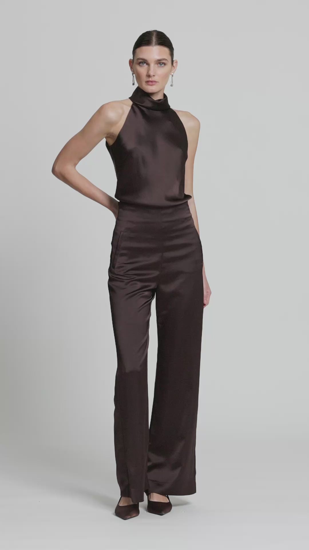 The Kirsten Pant is a refined wide-leg style crafted from heavy draped sateen. Designed to sit high on the waist, it offers effortless sophistication for work, events or evening wear.